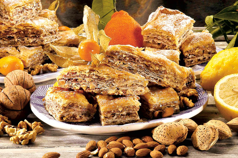 2. Se pun nucile la copt câteva minute, apoi se macină, la fel şi migdalele. Separat, se caramelizează zahărul, se adaugă untul, nucile şi migdalele măcinate şi se lasă la baie de aburi să se lege.