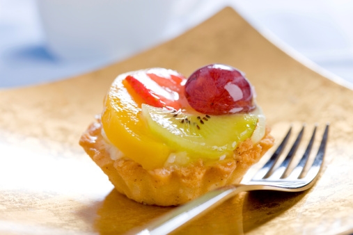 ► Amestecă untul, zahărul şi lichiorul de ou până obţii o spumă groasă. Acoperă partea de jos cu această compoziţie, pune o felie de kiwi şi de căpşune, iar deasupra  cremă. Se acoperă cu o feliuţă de aluat la final.