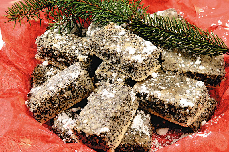 1. Albuşurile se bat spumă tare, apoi se adaugă zahărul, zahărul vanilat şi o lingură zeamă de lămâie. Se bat în continuare până se întăresc din nou, apoi se adaugă gălbenuşurile, untul bătut spumă, o lingură coajă de lămâie, făina amestecată cu praful de copt şi macul.