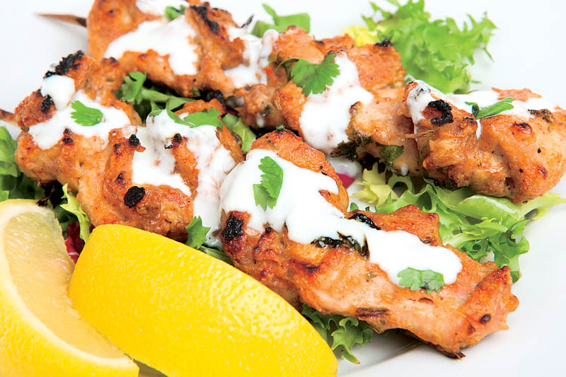 4. Se spală salata, se toacă mărunt şi se prepară cu ulei, sare, zahăr, lămâie şi piper. Se pune într-un bol, se aşază pulpele pe deasupra şi se stropesc cu sosul de usturoi. Se presară pătrunjel pentru un aspect plăcut.