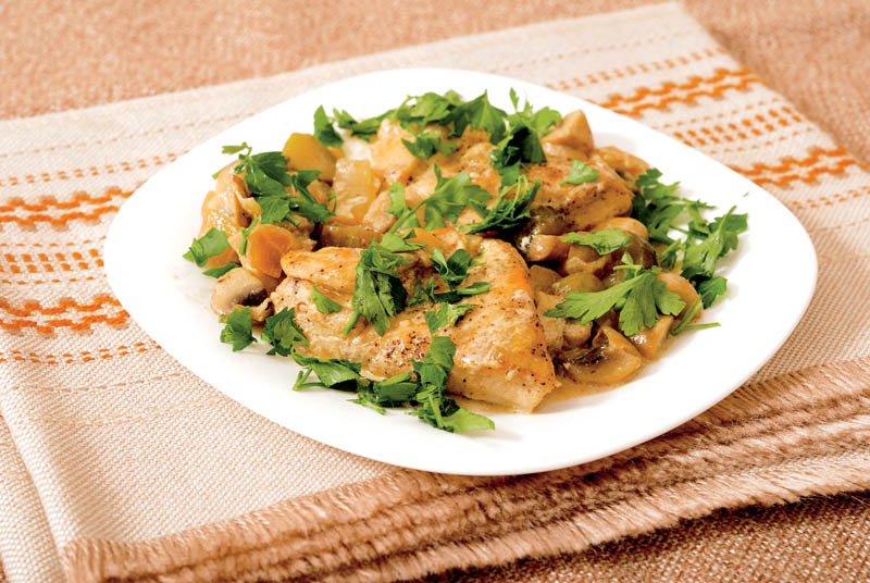 Pui cu sos de vin şi pătrunjel verde