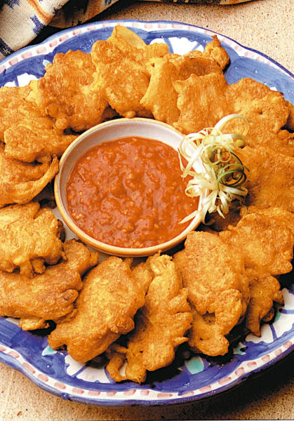 3. Bucăţile de carne se dau prin făină şi compoziţia de ou, apoi se prăjesc în ulei încins. Se lasă la scurs pe un şervet de hârtie şi se servesc cu sos picant.
