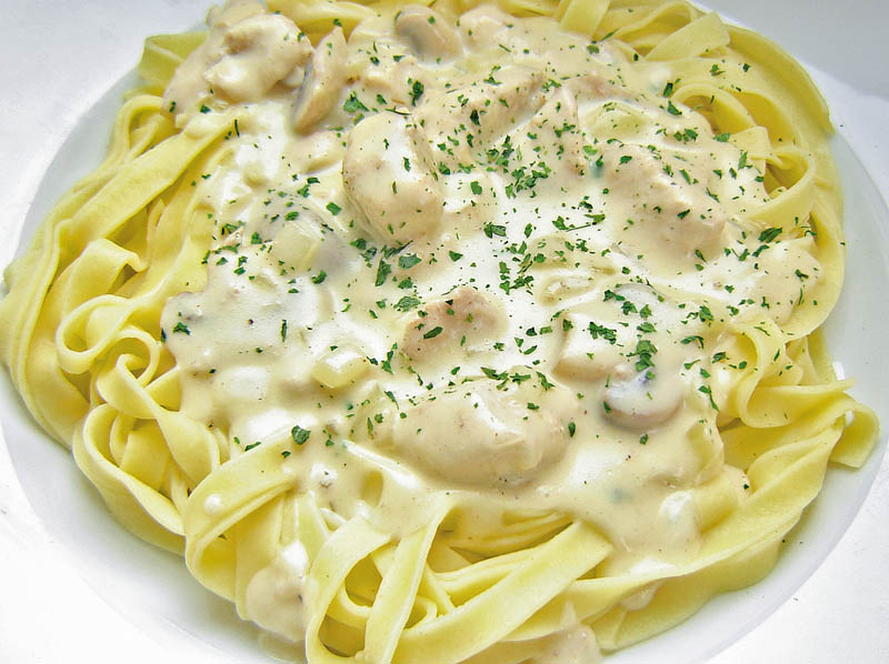 4. Se scoate pieptul din cuptor, se taie bucăţele mici, se toarnă sosul béchamel, caşcavalul ras şi se mai lasă câteva minute să facă crustă. Se scoate şi se ornează cu rozmarin şi se serveşte cald cu paste.
