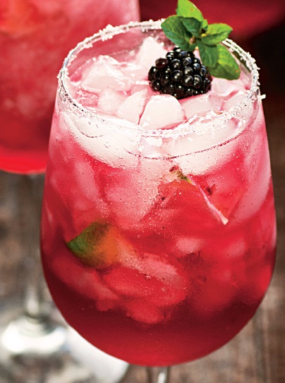 3. Apoi se adaugă sucul de portocale roşii foarte bine răcit, frunzele de mentă tocate sau rupte şi apa minerală.