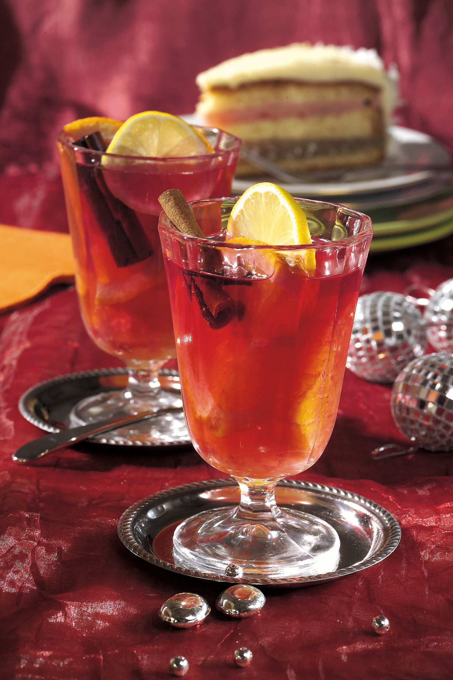 2. Portocala şi lămâia, bine spălate, se taie felii şi se pun în vinul condimentat. Ca să nu se evapore, romul se va adăuga cu puţin timp înainte de a fi servit.