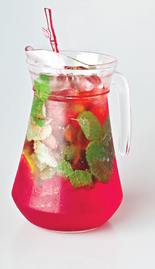 2. Se prepară o limonadă, care se îndulceşte cu miere. Apoi, într-un vas mai mare, se amestecă cu mustul de struguri roşii, în care se adaugă frunze de mentă pentru o aromă mai deosebită.