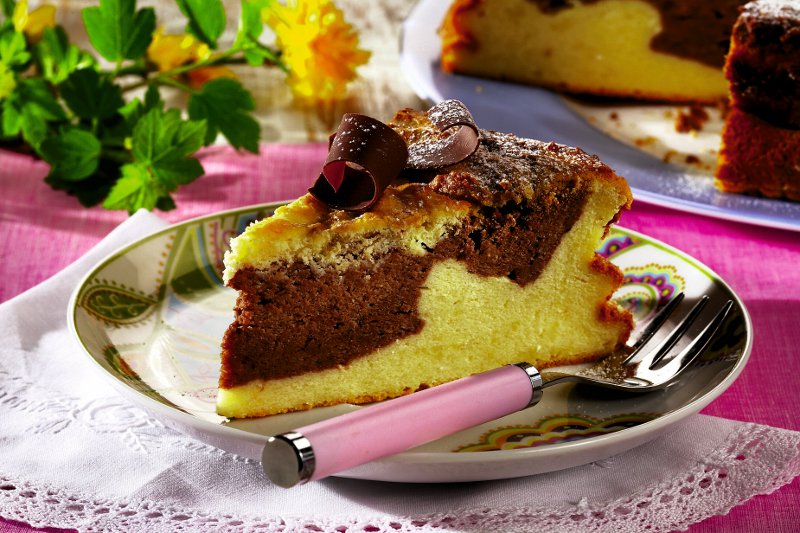 4. Se scoate din cuptor şi se lasă la temperatura camerei. După ce s-a răcit, se pudrează cu nucă măcinată şi se ornează cu ciocolată rasă.