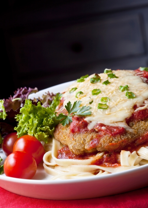 ► Prazul se spală şi se taie fâşii groase. Ciupercile se taie rondele. Roşiile se opăresc câteva secunde în apă fiartă, se scot şi se taie bucăţele. Bucăţile de şniţel se dau cu sare şi piper.