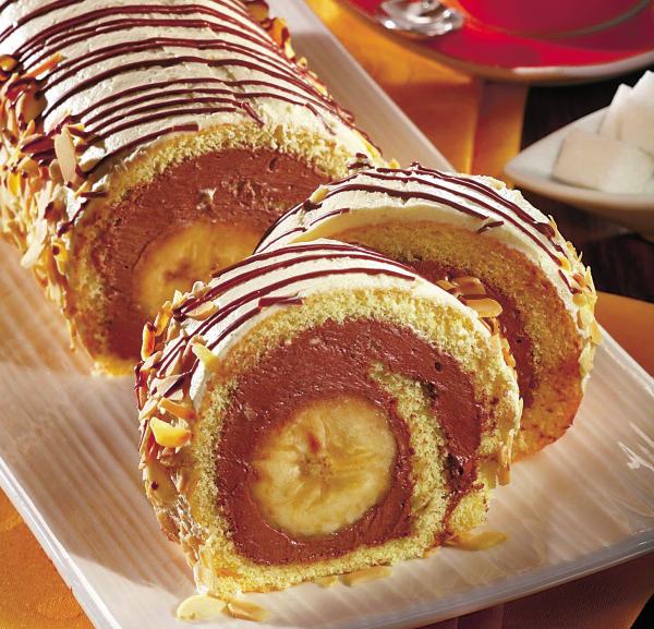 Ruladă cu cremă şi banane
