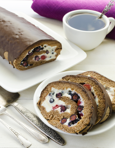 Învaţă să prepari o ruladă delicioasă, umplută cu spumă uşoară de afine şi frişcă.