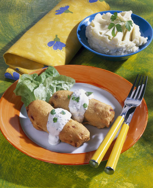 4. Rulourile se servesc ornate cu crema de castraveţi şi se pot savura alături de o garnitură la alegere: salată verde, salată de sfeclă, de ridichi sau de gulii.