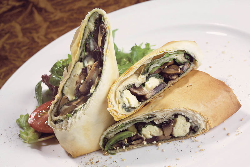 2. Se încinge cuptorul. Foile de plăcintă se întind una cîte una şi se ung cu unt. Se pune compoziţia de ciuperci, se rulează şi se presează la capete să nu iasă umplutura.