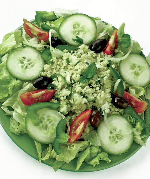 1. Se curăţă salata, se spală în 2-3 ape şi se lasă să se scurgă în sită. Castraveţii se spală bine, se curăţă şi se taie felii potrivite.