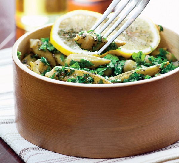 2. Se taie marunt patrunjelul si se face un sos din ulei cu suc de lamâie strecurat si un praf de sare.