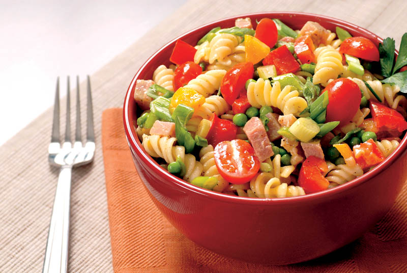 1. Pastele se fierb în apă cu sare, respectând timpul indicat pe ambalaj. Se trec apoi printr-un jet cu apă rece şi se lasă la scurs într-o strecurătoare. Toate legumele se spală şi se curăţă.