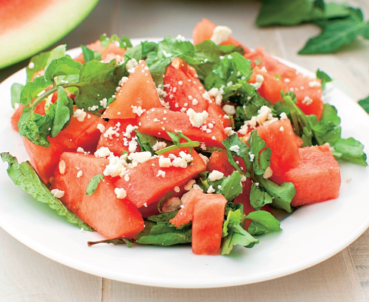 O salată de pepene roşu cu brânză şi rucolă – o combinaţie inedită pe care trebuie să o încerci. Iată reţeta.