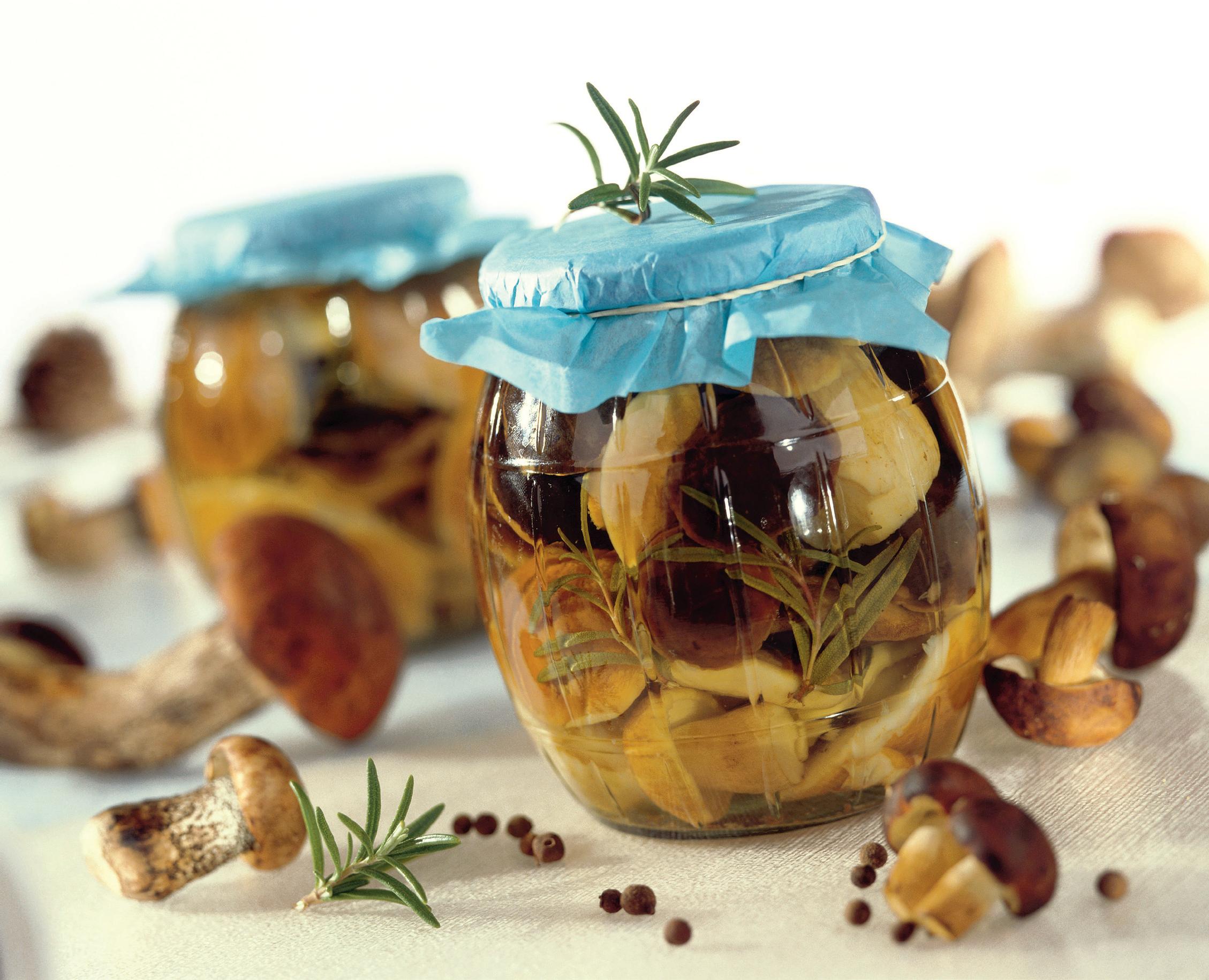 3. Se aşază în borcane. Un rând de ciuperci, o foaie de dafin, câteva boabe de piper şi de muştar, un rând de ardei copţi.