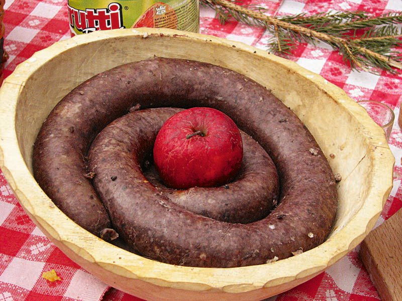 1. Se fierbe şoriciul, apoi, în aceeaşi apă, se fierbe şi orezul. Se căleşte ceapa în untură, apoi se amestecă cu orezul. Se adaugă sângele şi se amestecă totul, apoi se potriveşte de gust cu sare şi piper, boia, ienibahar. Se amestecă în continuare, până se obţine o pastă omogenă.