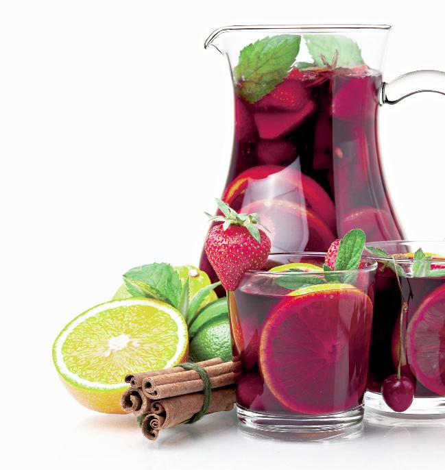 1. Vinul rece se pune într-un recipient (carafă mare de sticlă). Se adaugă zahărul, lămâile tăiate felii, scorţişoara, anasonul, piersicile curăţate de coajă şi căpşunele tăiate bucăţi. Opţional, se adaugă brandy sau coniac.