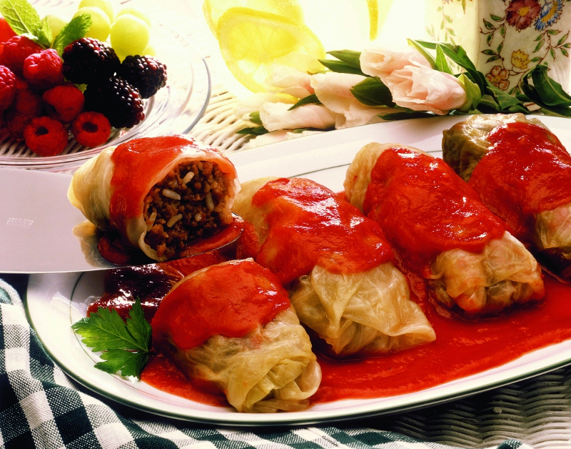 Sărmăluţe în foi de varză cu sos de roşii