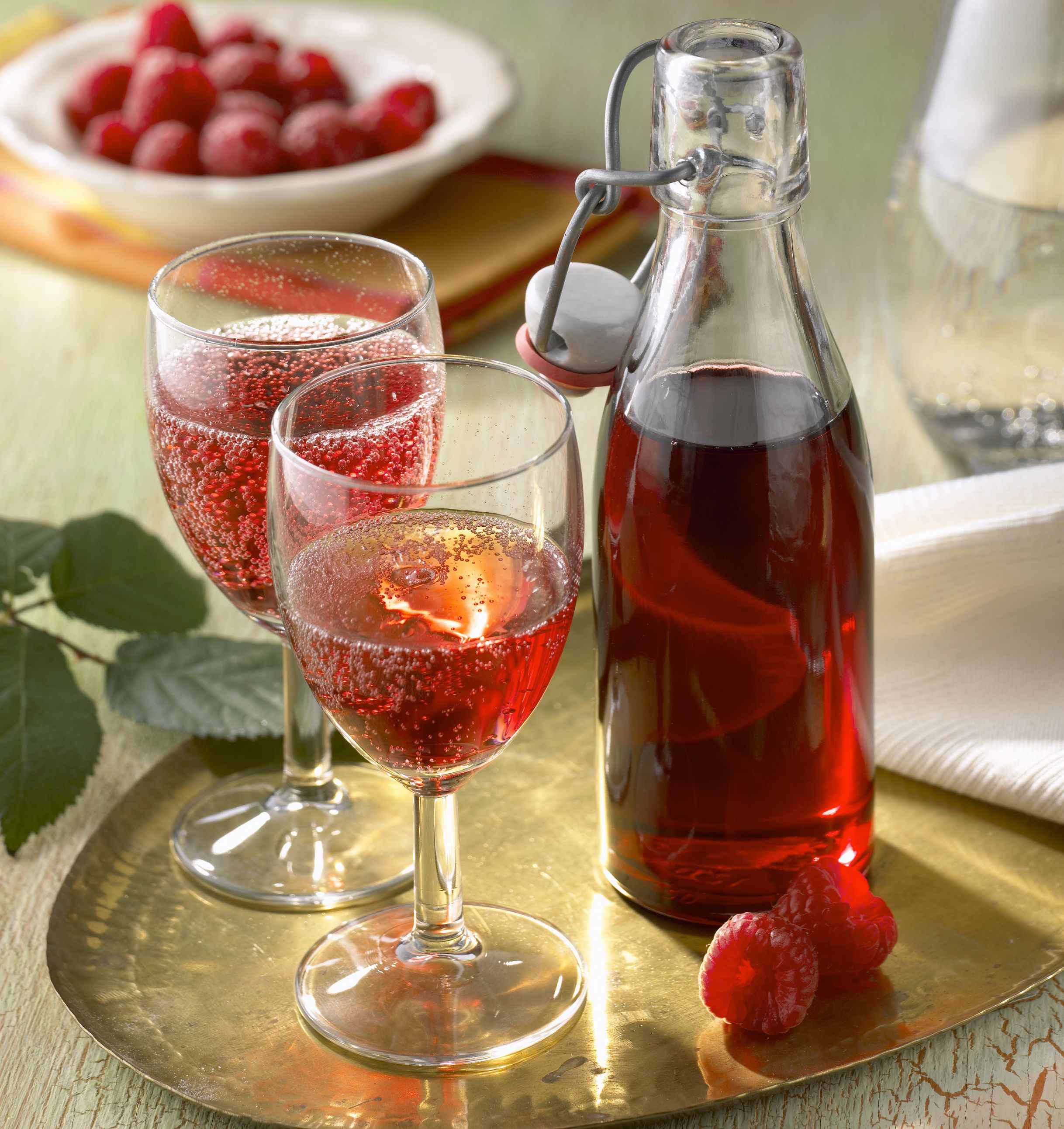 1. Se pune zmeura într-o strecurătoare şi se spală bine cu apă rece. După ce a fost lăsată să se scurgă câteva minute, se pune într-un borcan şi se zdrobeşte cu mâna. Borcanul se acoperă cu un tifon şi se pune la loc rece, pentru a lăsa sucul să fermenteze circa 48 de ore. După acest interval, fructele se storc printr-un tifon umed sau printr-o maşină de stors fructe.