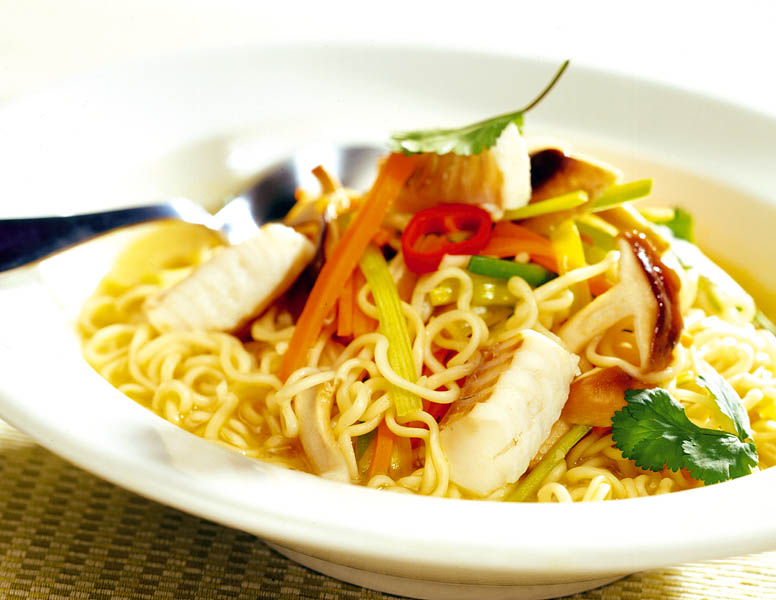 3. Se amestecă 6 linguri de supă, cu zeama de lămâie, o lingură de ulei, sare şi piper. Spaghetele se amestecă cu peştele şi ciupercile. Se presară verdeaţă, se stropeşte cu sos şi se pot servi.