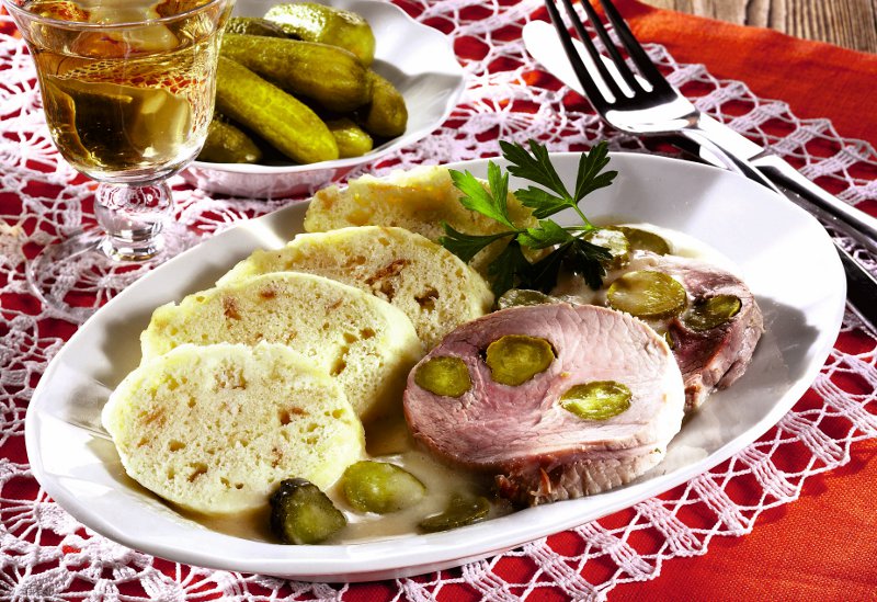 4. Garnitura are consistenţa ceva mai densă decât găluştile pentru supă. Pentru prepararea ei, se amestecă laptele cu grişul, făina, ouăle şi praful de copt, până se ob- ţine o cocă omogenă. Pâinea veche se taie cubuleţe şi se rumeneşte câteva minute la cuptor, înainte de a se amesteca în cocă. Ciupercile se scurg bine, se toacă fin sau se dau prin maşină şi se încorporează apoi în cocă. Se formează franzeluţe lungi, cam de 20 cm. Se pune o oală ceva mai mare la fiert, cu apă şi sare. Când clocoteşte apa, se adaugă franzelele, pe rând, şi se lasă cam 15 minute. Se scot apoi, se scurg şi se taie felii.
