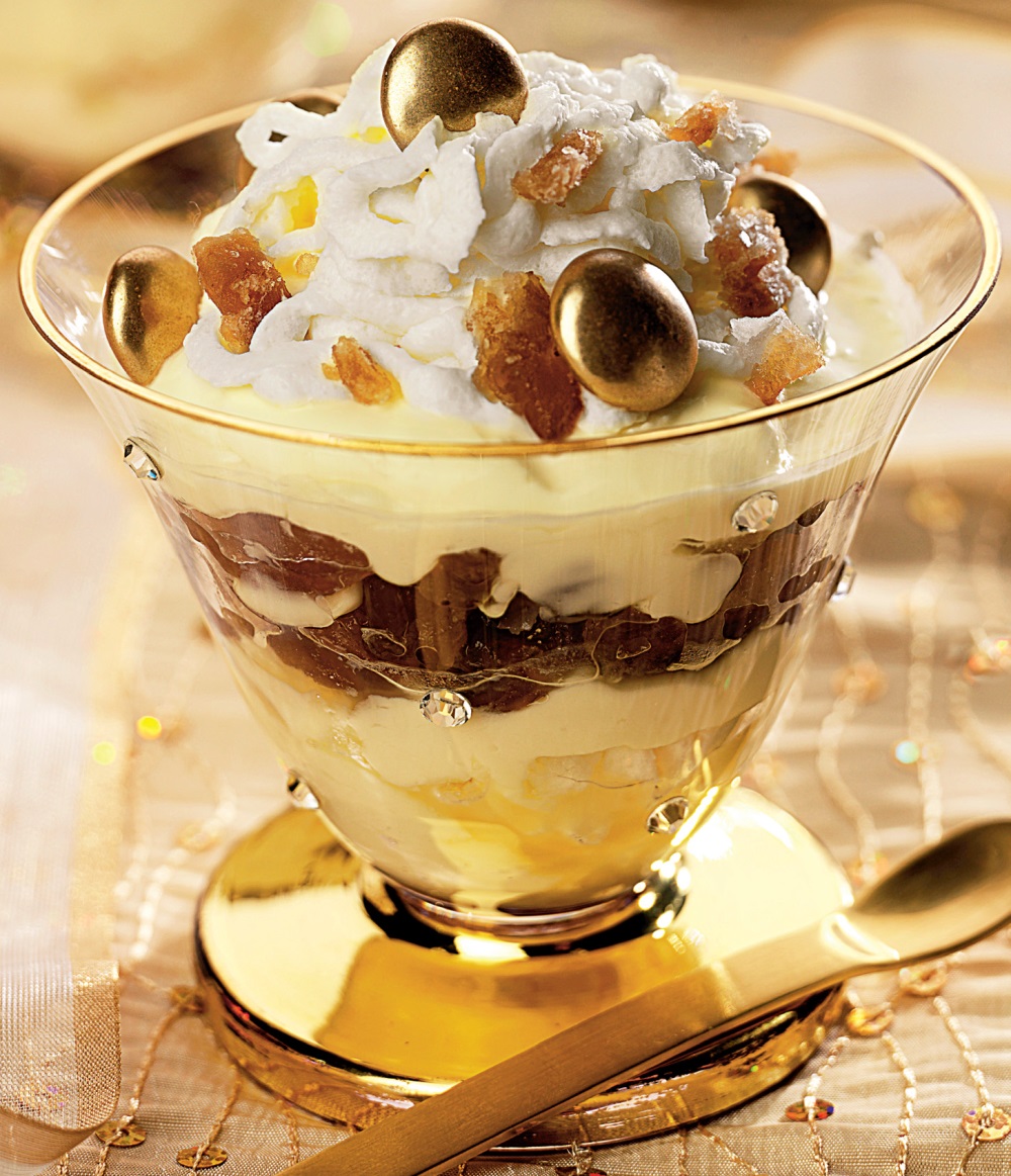 2. În cupe se repartizează castanele glasate, eventual tăiate mai mărunt.