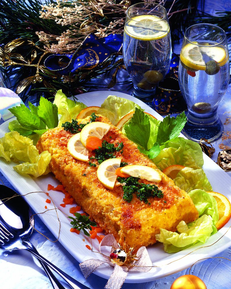 2. Se alege un vas potivit de mare, se unge cu unt sau ulei şi se presară pesmet într-un strat cu o grosime de 0,5 cm. Se toarnă apoi compoziţia de peşte, se nivelează şi deasupra se mai presară puţin pesmet. Este bine să ocupe maximum 3/4 din înălţimea vasului. Vasul cu această compoziţie se pune într-un vas mai mare, care se umple pe jumătate cu apă. Cele două vase se bagă în cuptor şi se lasă 45 de minute.