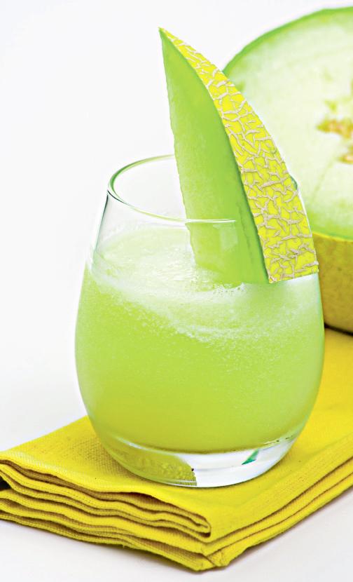 1. Se curăţă pepenele galben, apoi se taie cubuleţe şi se pasează. Se adaugă zahărul şi mierea. 2. Se sfărâmă cuburile de gheaţă şi se amestecă până când compoziţia se omogenizează.