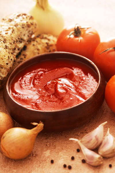 3. Roşiile se decojesc, se pasează cu blenderul şi se trec prin sită să nu rămână seminţe. Se verifică dacă au fiert şi celelalte legume şi se scoate ceapa şi usturoiul.