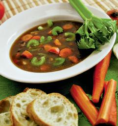 4. Restul legumelor fierte se taie rondele şi se pun în ciorbă. Se mai lasă să dea în câteva clocote şi se opreşte focul. Se serveşte ornată cu pătrunjel şi ţelină.