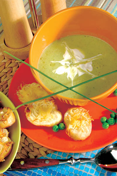 2. Mazărea fiartă se trece printr-o sită deasă, apoi se subţiază cu supa în care au fiert legumele. Se adaugă restul de unt şi se fierbe la foc mic, 5 minute, amestecând continuu. Se condimentează după gust cu sare, iar cine doreşte mai poate adăuga puţină nucşoară pisată.