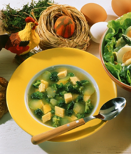 1. Toate legumele se curăţă şi se spală. Ceapa, morcovii, păstârnacul şi ţelina se taie bucăţi mari, iar broccoli se rupe în bucheţele mici.