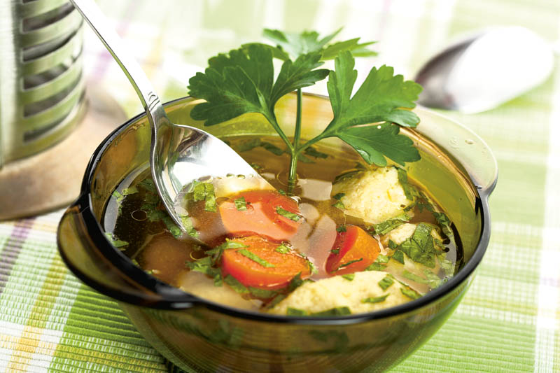 4. Separat, se bat ouăle bine cu sare şi se adaugă grişul în ploaie amestecându-se uşor să nu facă cocoloaşe. Cu o lingură umezită se ia din compoziţie şi se pune în oală, obţinându-se găluştile. Supa se serveşte ornată cu pătrunjel şi cu un cubuleţ de unt.