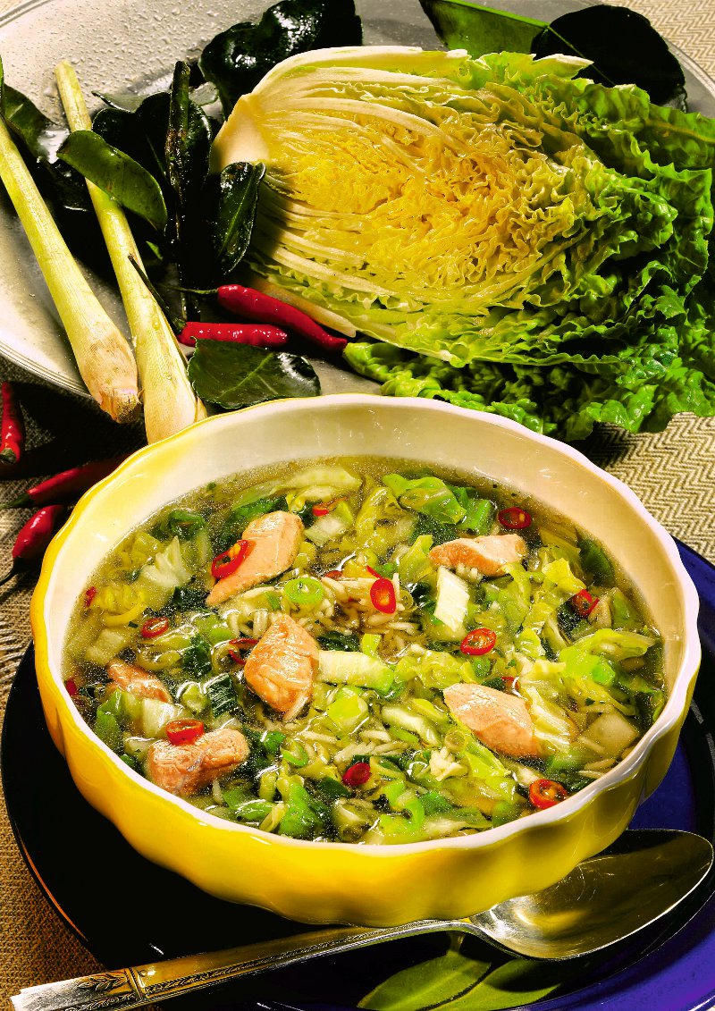 4. După câteva minute, se adaugă varza şi o linguriţă de ulei. Când supa e aproape gata, se pun ardeiul iute tăiat rondele şi pătrunjelul tocat.