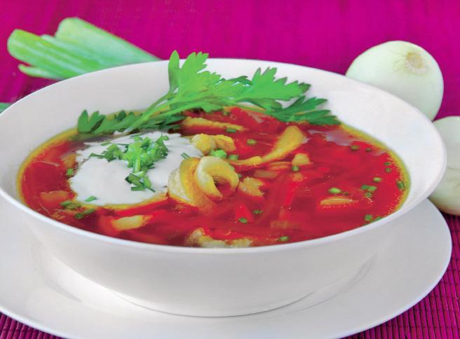 1. Toate legumele se curăţă şi se spală. Cartofii se taie cuburi, usturoiul feliuţe, varza fâşii, iar restul cubuleţe.