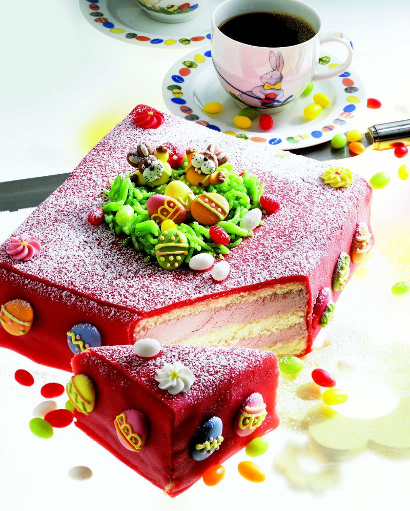 5. Pentru glazură, se amestecă bine toate ingredientele până se obţine o pastă de consistenţa plastilinei. Se întinde cu sucitorul, pe o planşetă unsă cu ulei, apoi se îmbracă cu ea tortul montat.