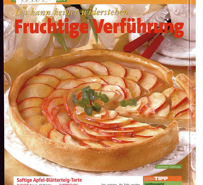 2. Zeama de lămâie se amestecă cu gemul de caise. Merele se spală, se curăţă şi se taie felii subţiri. Aluatul se întinde într-o foaie groasã de ½ cm şi se pune într-o formă unsă cu puţin unt. Se înţeapă din loc în loc cu furculiţa, să nu se umfle la copt.