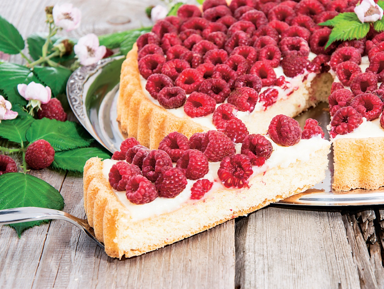 Tarta cu zmeură este gustoasă şi uşor de făcut. Arată foarte bine. Iată o reţetă simplă!