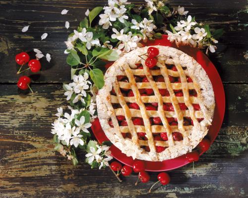 3. Peste aluatul din formă se pune gemul de fructe, se aşază benzile de aluat şi se unge tarta cu oul bătut.