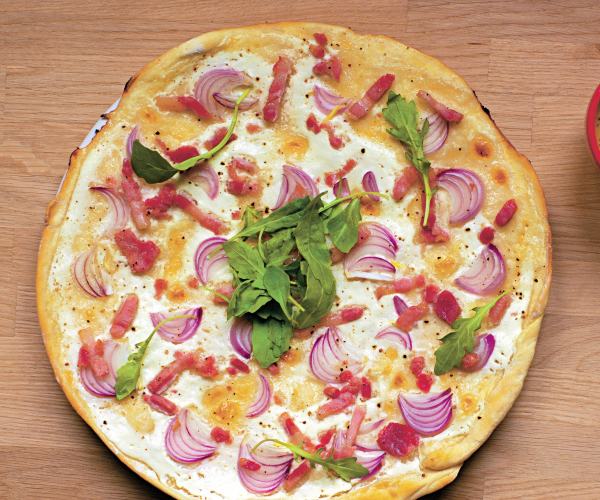 3.    Se presara si ceapa cu baconul, se repartizeaza cascavalul si se da la cuptor pentru 10 minute la foc mare.