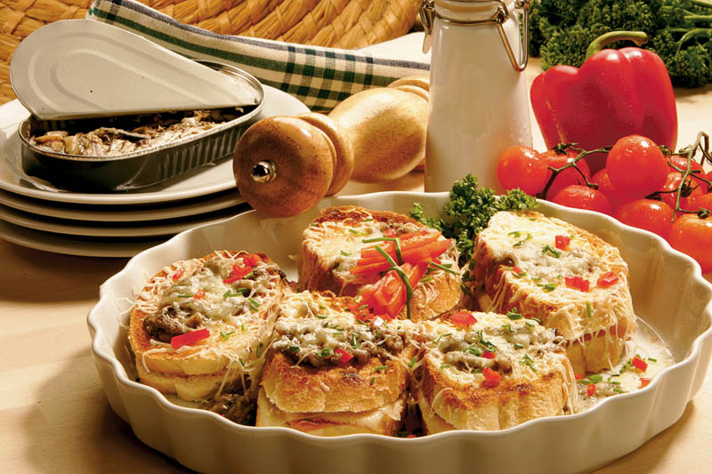 1. Bagheta se feliază şi se prăjeşte. Între timp, se desface o conservă de sardine şi se lasă la scurs. Se pasează apoi peştele şi se amestecă cu untul înmuiat, zeama de lămâie, sare şi piper după gust.