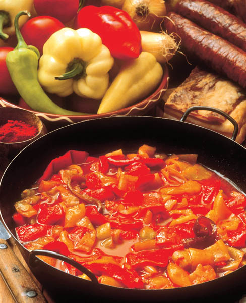 4. Se bagă apoi în cuptor, aproximativ 15-20 de minute, să se rumenească. Tocana de ardei cu afumătură se serveşte ornată cu frunzuliţe de pătrunjel verde şi busuioc.