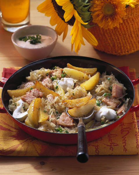 2. Separat, se toacă varza mărunt şi se adaugă în cratiţă amestecându-se cu atenţie să nu se fărâmiţeze cartofii. Se lasă focul domol şi se acoperă cu un capac să fiarbă înăbuşit.