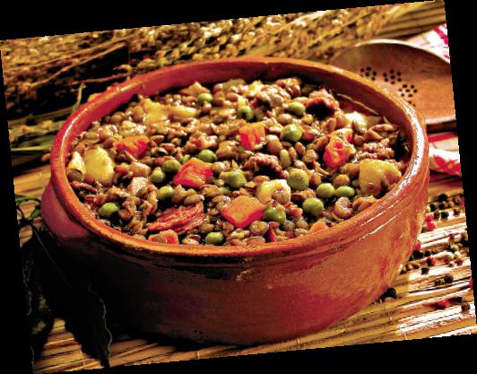 3. Muşchiul de porc se taie cubuleţe, cârnaţii se taie rondele şi apoi se călesc toate împreună cu ceapa şi ardeii. După ce s-au rumenit, se adaugă cartofii şi morcovii tăiaţi cubuleţe, mazărea şi apă călduţă. Se lasă să fiarbă aproximativ 30 de minute.
