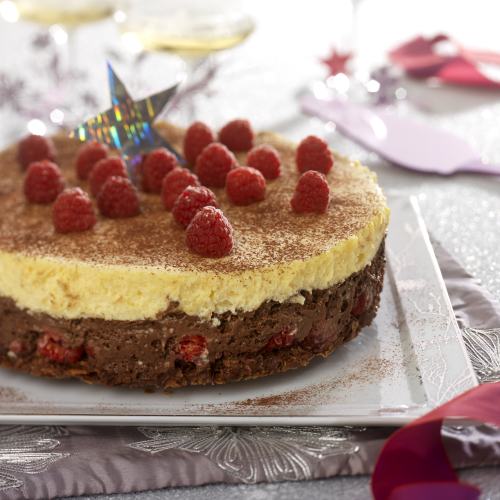 ►Pentru umplutură se hidratează gelatina în 6 linguri de apă călduţă 15 minute şi se pune pe foc până se topesc toate granulele, fără să ajungă la fierbere. Se amestecă cu câteva linguri de zahăr şi cu fructele. Frişca se bate şi se pune peste gelatină după ce s-a răcit. Deasupra se presară fructele. Se dă la rece 2-3 ore.