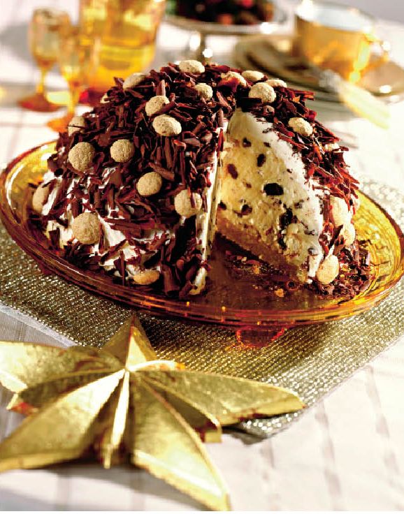 4. Pentru bezeaua de deasupra, se bat albuşurile spumă, se adaugă zahărul şi vanilia. Bezeaua se toarnă cu poşul pe fundul unei oale tapetată cu hârtie pentru copt şi se lasă la uscat cu uşa deschisă. După ce s-a copt, se desface uşor de pe hârtie. Se toarnă crema peste blatul de nucă şi se acoperă cu pălăriuţa de bezea. Se ornează cu fulgi de ciocolată şi cu minipricomigdale. Se lasă la rece câteva ore până când crema intră în cele două foi.