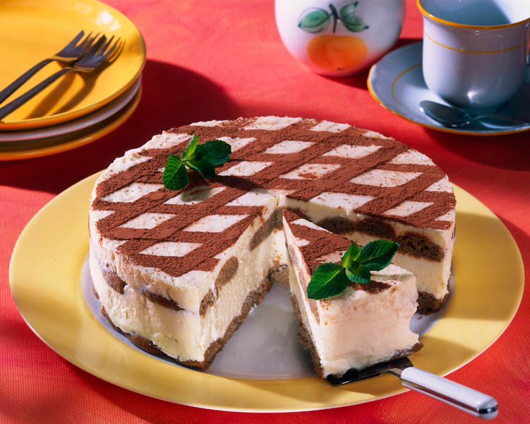 3. Se pune jumătate din cafeaua răcită într-o farfurie adâncă, apoi se trec jumătate din pişcoturi prin cafea. Se lasă să se îmbibe doar 1-2 secunde şi se aşază ordonat pe un platou. Se toarnă trei sferturi din cremă, apoi se îmbibă în cafea un nou strat de pişcoturi, se aşază peste cremă şi se acoperă cu restul de cremă. Se pune la frigider minimum 3 ore.