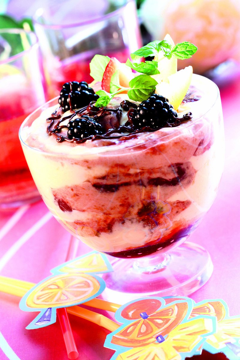 4. Se dau toate fructele prin blender, după care se încorporează în spuma de albuşuri şi se amestecă uşor. Se pune compoziţia în boluri şi se dă la frigider pentru două ore.